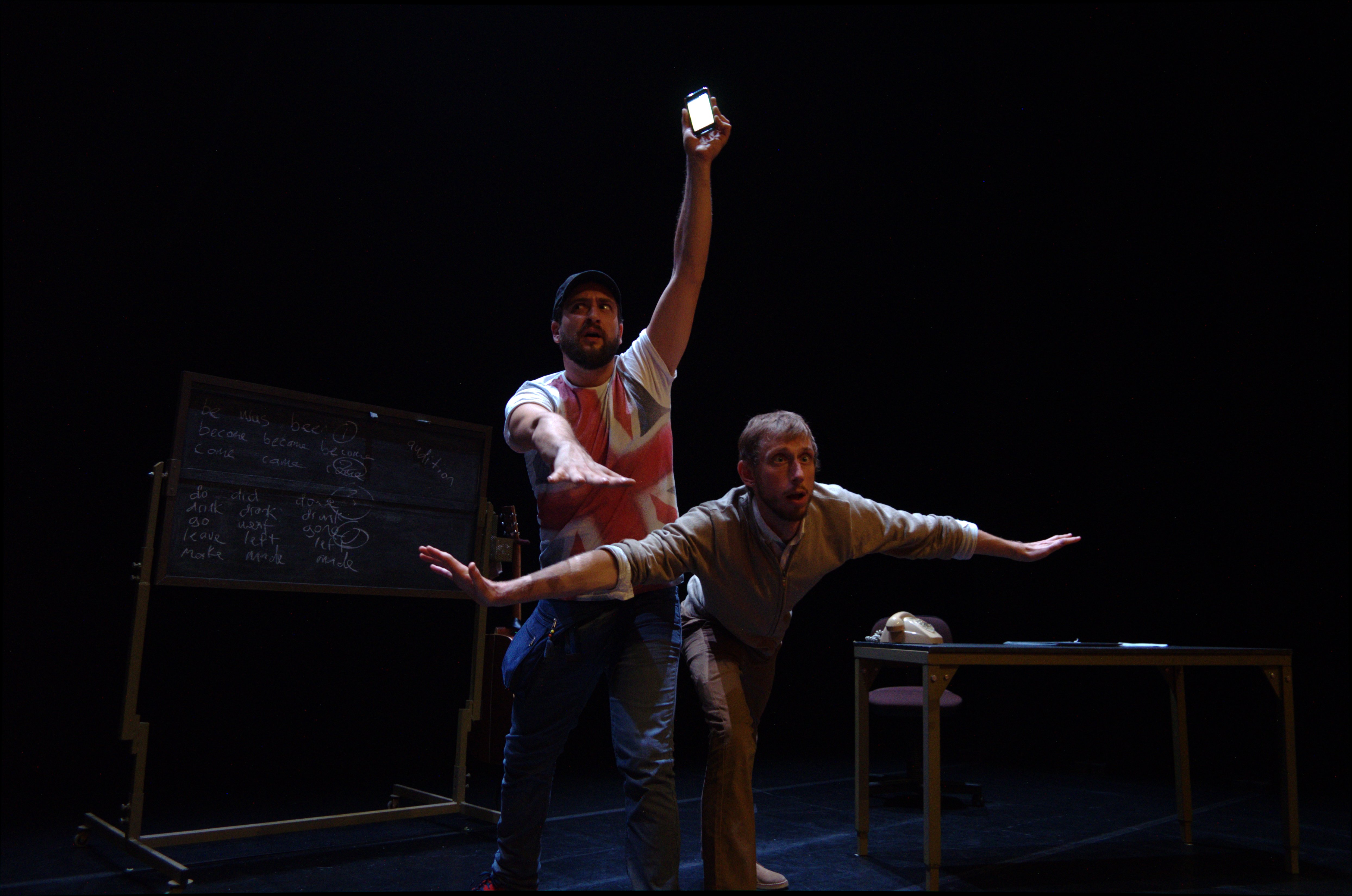 El text de l’espectacle ha estat creat per Anna Marí (doctora en Filologia Anglesa i dramaturga) amb la col·laboració de Daniel Tormo (dramaturg i professor de llengua estrangera) i Elyos Ruile (actor nadiu d’Austràlia i professor d’anglés a València).